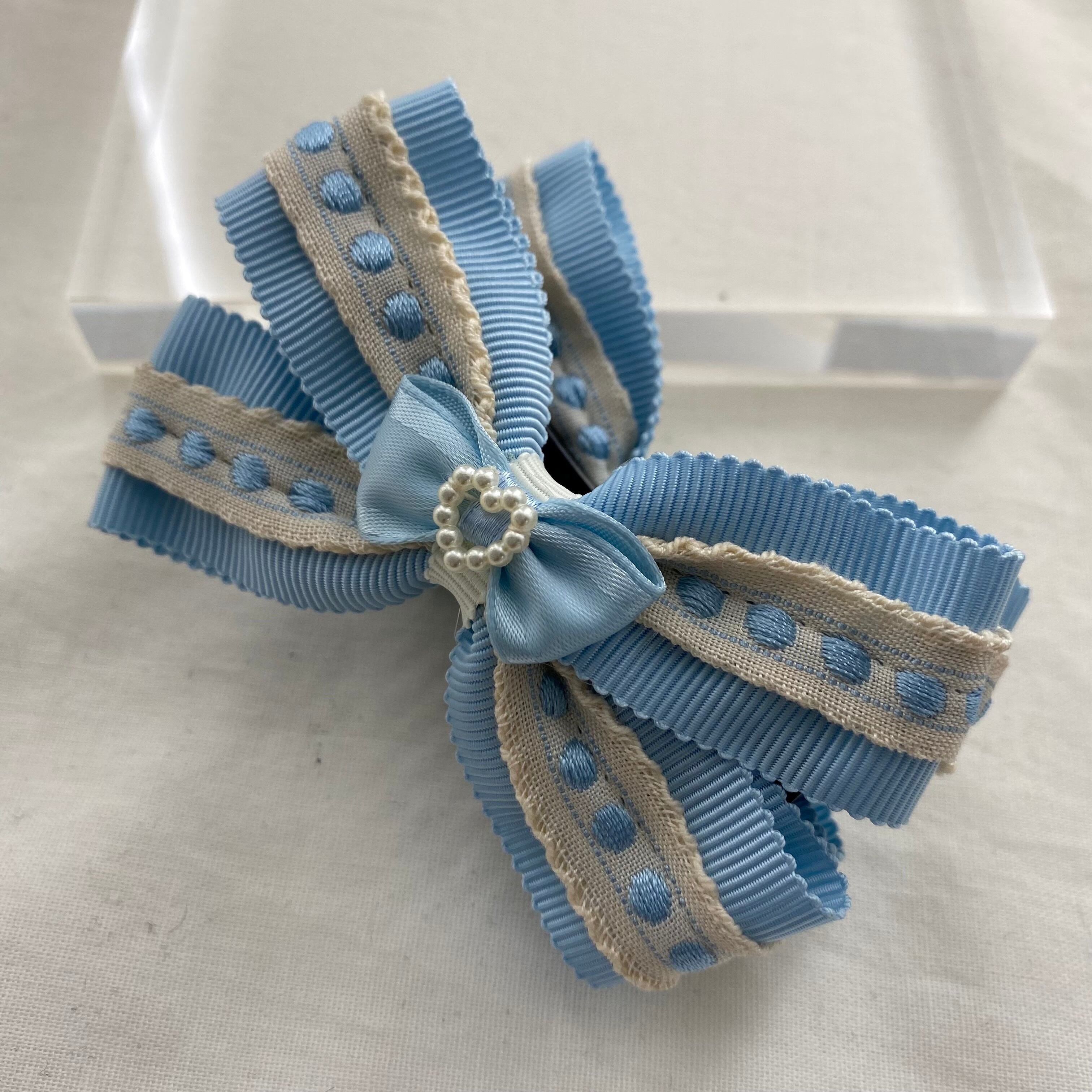 水色リボンのキッズ用バナナクリップです。