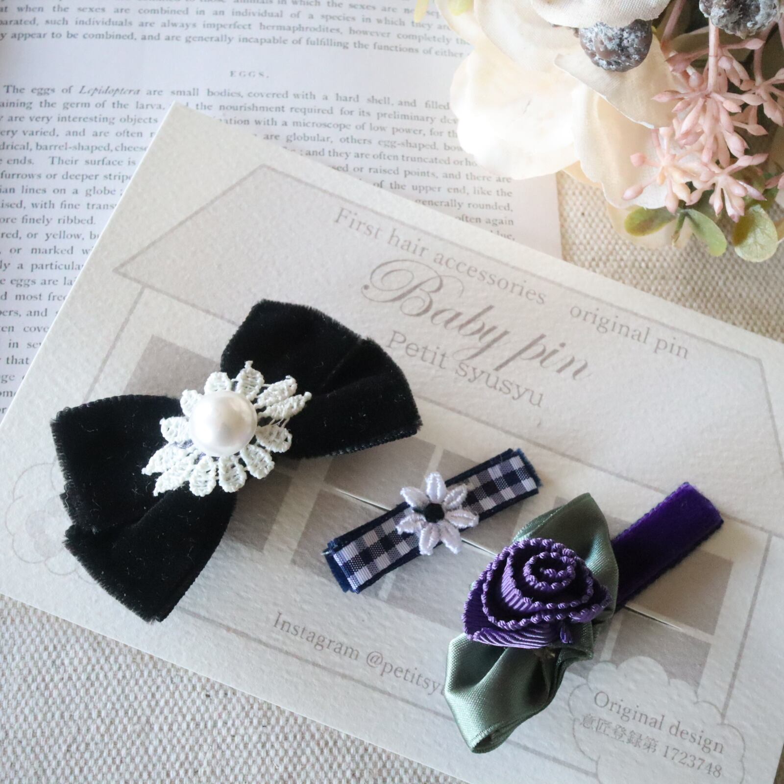髪の毛が少ない子でもオシャレを楽しめるBaby pin 3点セットです。