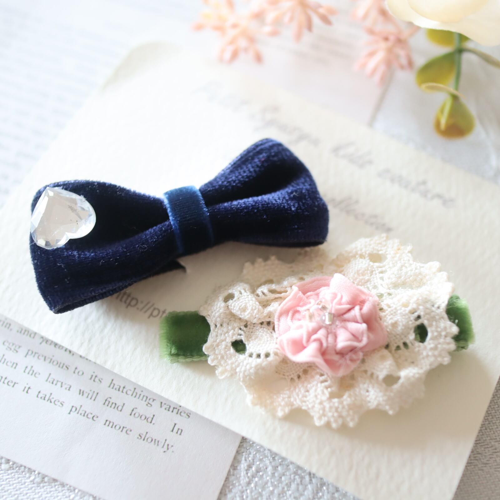 Babypin 2点セット 髪少ない子でもリボンが付けられる