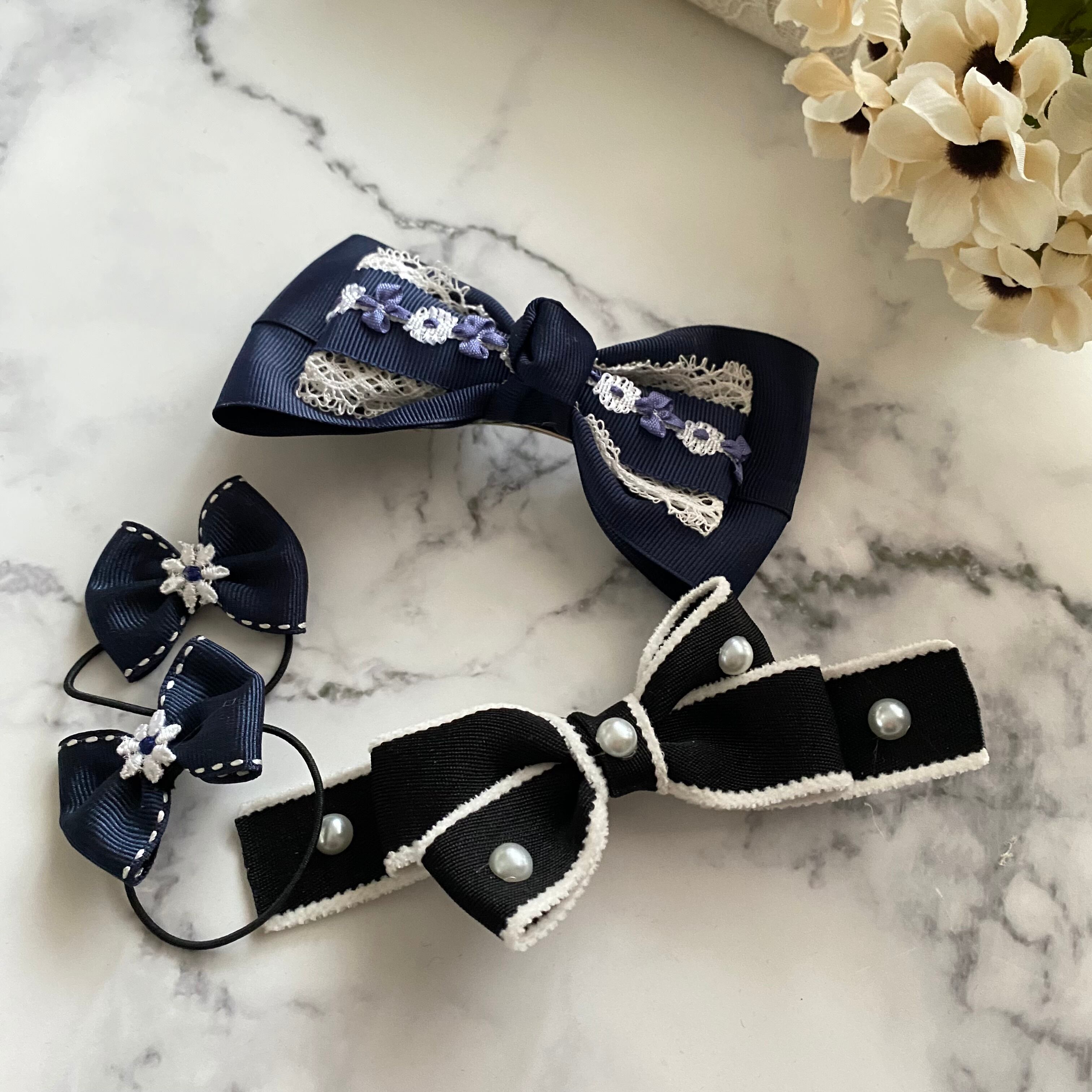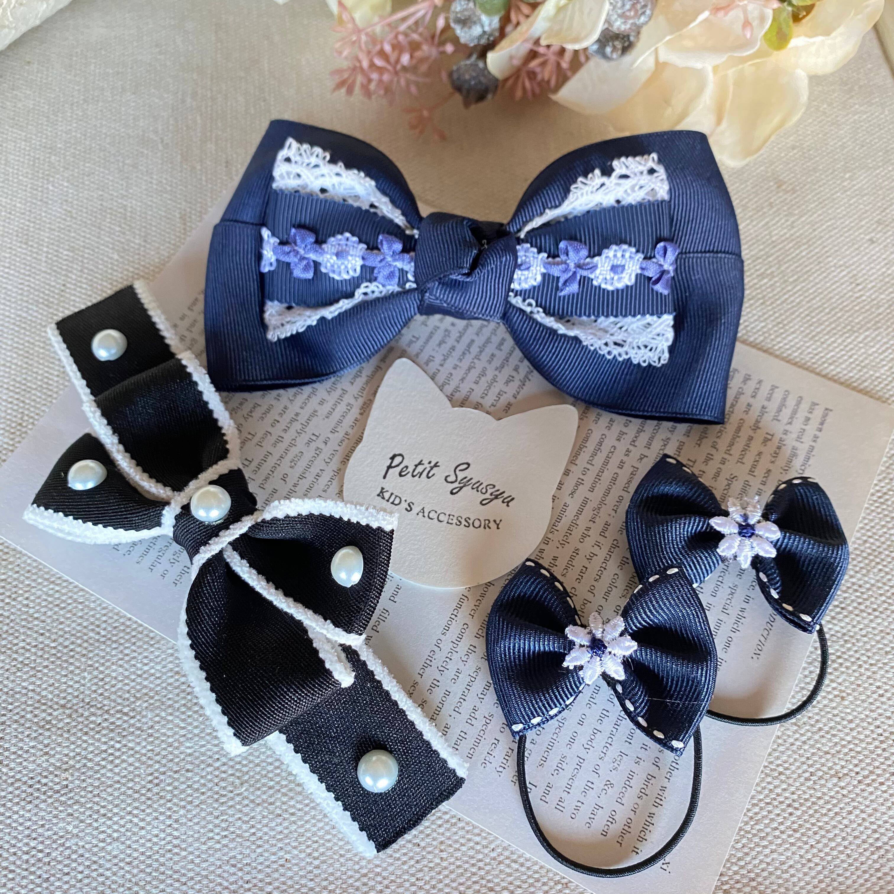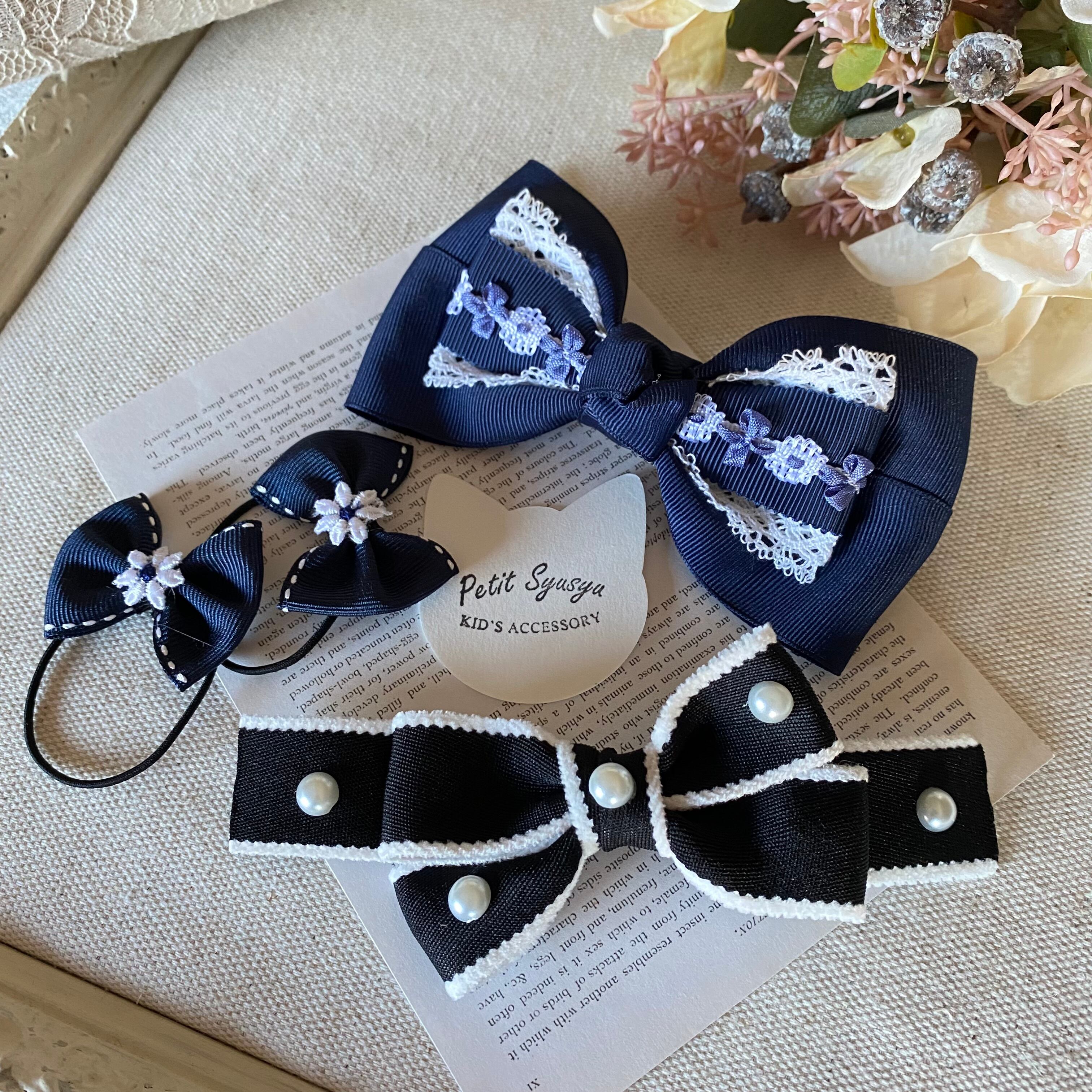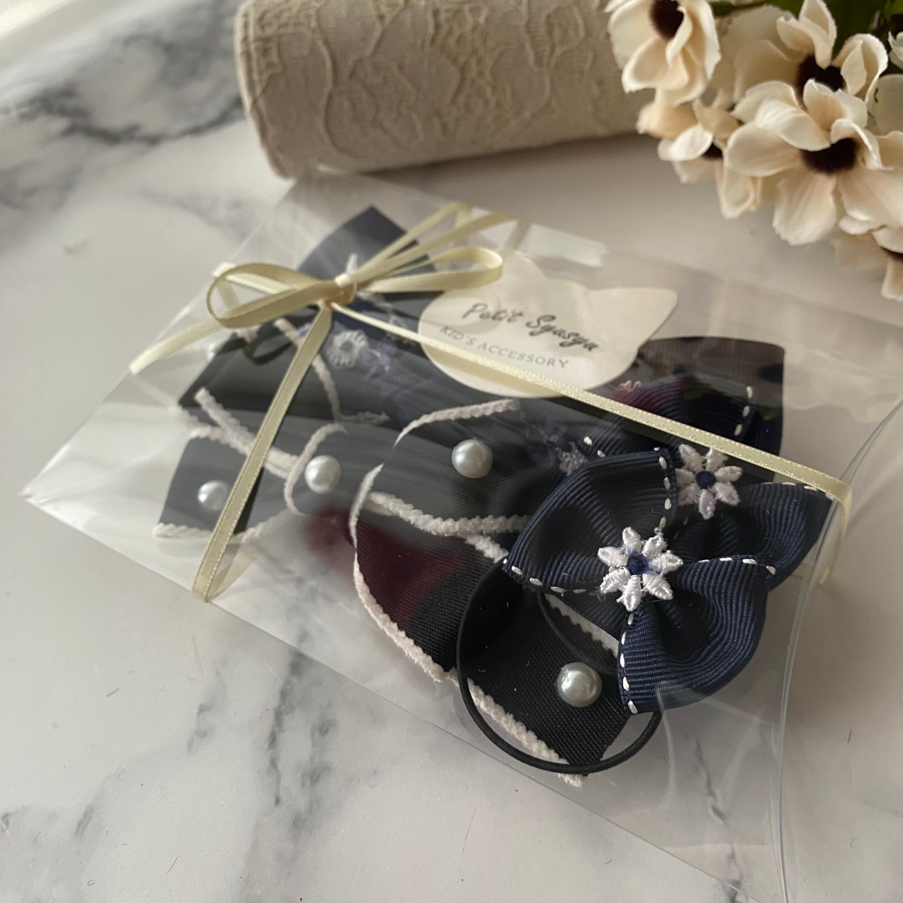 可愛いヘアアクセサリーが揃った入学準備セット、ネイビーコフレです。